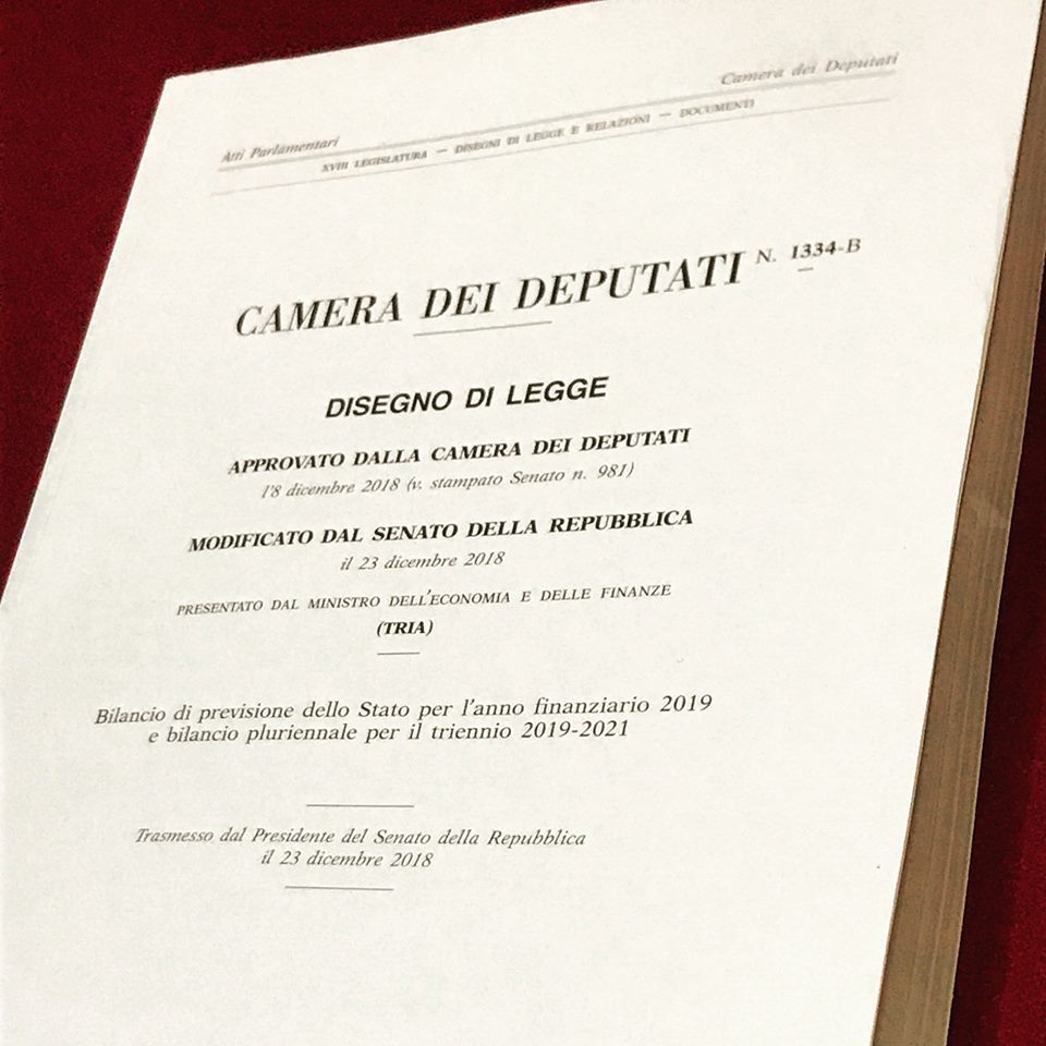 La Legge di Bilancio per il 2019, approvata a Montecitorio l’8 dicembre e modificata dal Senato il 23 dicembre, è ora all’esame della Commissione Bilancio. L’inizio della discussione in Aula è previsto domani, venerdì 28 dicembre.