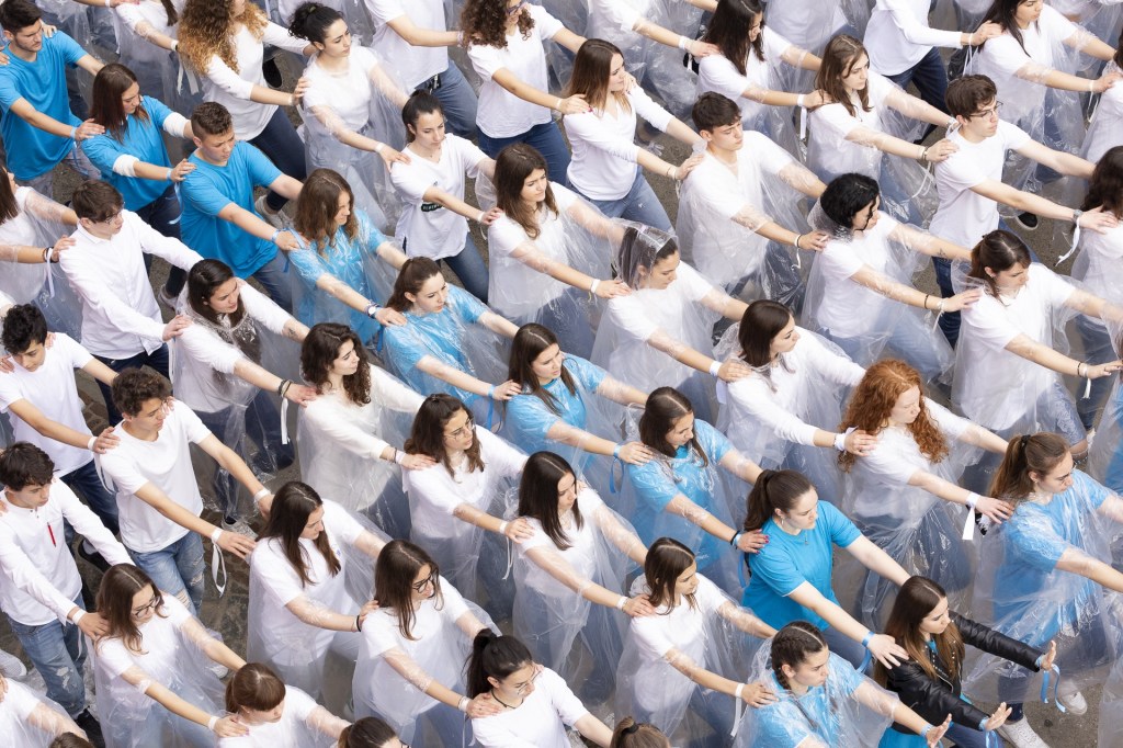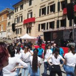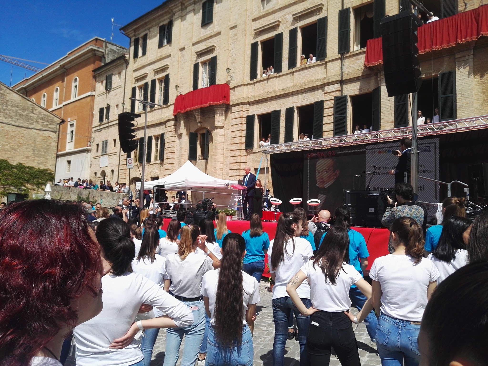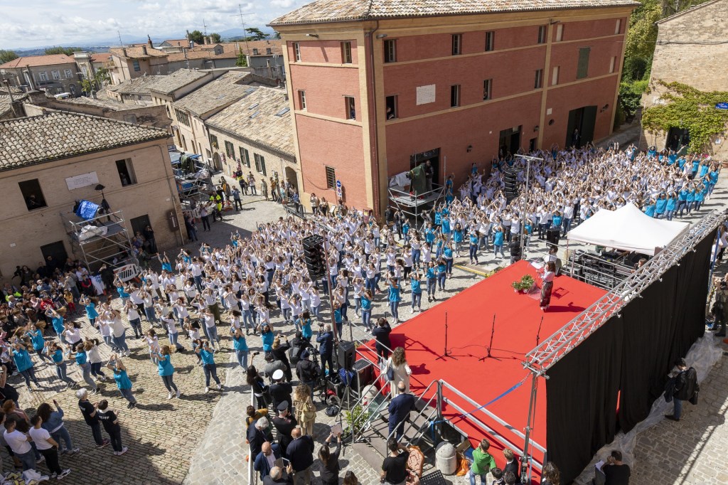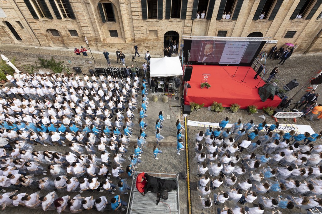 Lungo la via principale del centro storico di Recanati oltre 2.800 studenti delle scuole recanatesi (gli Istituti Comprensivi “N. Badaloni” e “B. Gigli”, gli Istituti d’Istruzione Superiore “V. Bonifazi” e “E. Mattei” e il Liceo “Giacomo Leopardi”) hanno recitato i versi de “L’Infinito”.