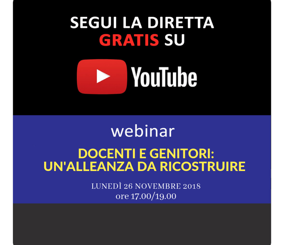 OGGI LIVE ALLE ORE 17 SUL NOSTRO CANALE YOUTUBE LA PRIMA PARTE DELLA I°LEZIONE DEL WEBINAR “Docenti e genitori: un’alleanza da ricostruire”.