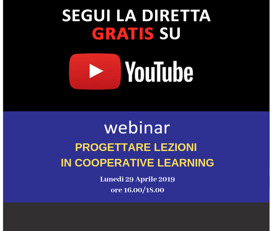 Oggi dalle ore 16 segui la diretta sul canale youtube di Tecnica della Scuola della prima mezz’ora del webinar: “PROGETTARE LEZIONI IN COOPERATIVE LEARNING Basi essenziali“ potrai così decidere successivamente se iscriverti al corso completo.