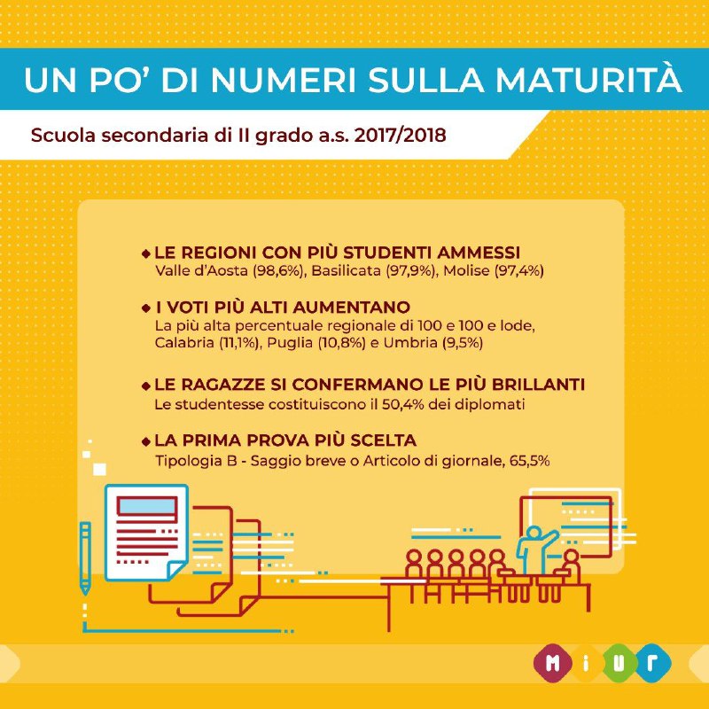 In tutte le Regioni la percentuale di promossi è superiore al 99% (con un 100% di diplomati in Valle d’Aosta), in linea con il 99,6% nazionale (era il 99,5% nel 2016/2017). Differenze più significative si riscontrano nelle percentuali di ammessi all’Esame. A fronte del 96% nazionale (96,1% l’anno precedente), le Regioni con la più alta percentuale di ammessi sono Valle d’Aosta (98,6%), Basilicata (97,9%), Molise (97,4%). In coda per numero di ammessi troviamo Trentino Alto Adige (94,5%), Liguria (93,6%), Sardegna (91,2%).