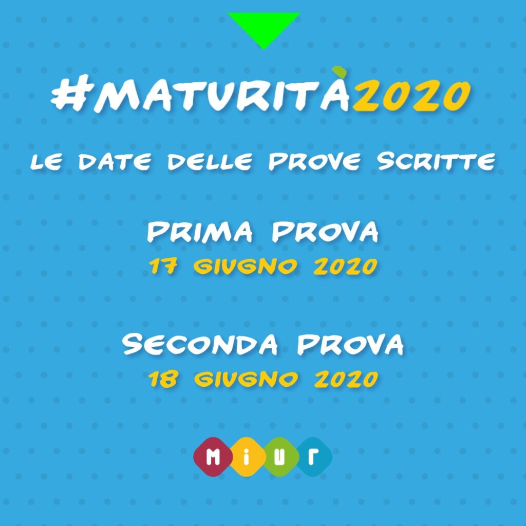 La prima prova scritta, di italiano, si terrà su tutto il territorio nazionale mercoledì 17 giugno 2020 alle 8.30. La seconda prova, che cambia in base all’indirizzo della scuola, si svolgerà, come di consueto, il giorno seguente, quindi giovedì 18 giugno, sempre a partire dalle 8.30.