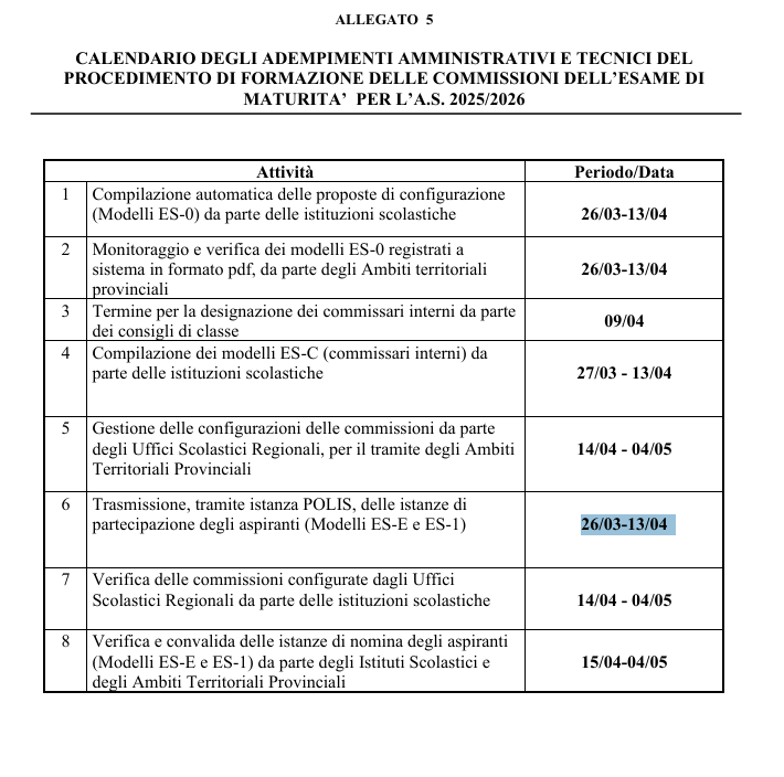 Le domande per fare parte delle commissioni, inviate tramite istanza POLIS, (Modelli ES-E e ES-1), possono essere inviate, secondo la timeline fornita dal Mim, dal 26 marzo al 13 aprile.