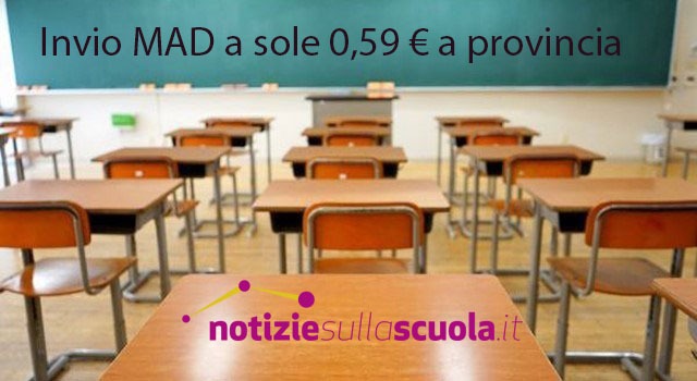 Con www.notiziesullascuola.it la scelta dell’intero territorio nazionale è conveniente anche in termini economici utilizzando la promozione attiva fino al 20 agosto: infatti, dividendo 64.90 € per 110 province in tutta Italia, l’invio della MAD per ogni provincia ha un costo pari a 0,59 euro.