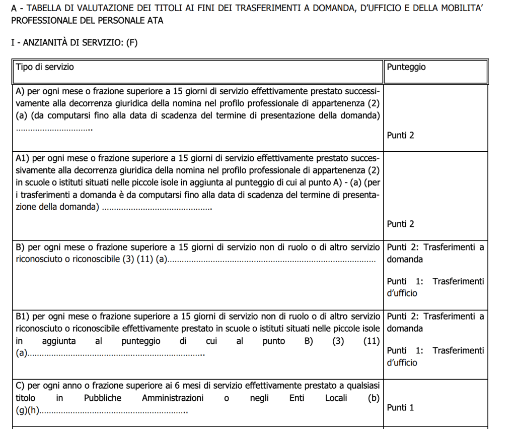 Il punteggio di ricongiungimento per il personale ATA vale 24 punti, c’è da specificare che ai fini della formulazione della graduatoria per l’individuazione del soprannumerario, le esigenze di famiglia, da considerarsi in questo caso come esigenze di non allontanamento dalla scuola e dal comune di attuale titolarità, sono valutate quando il familiare è residente nel comune di titolarità del soprannumerario; tale punteggio spetta anche per il comune viciniore quello di residenza del familiare, acondizione che in quest’ultimo comune non esistano altre istituzioni scolastiche alle quali possa accedere il personale interessato. Per gli assistenti tecnici tale ipotesi si realizza nel caso di mancanza di istituzione scolastica nella quale siano istituiti posti relativi a laboratori compresi nell’area di appartenenza degli interessati. Il personale Ata che fa domanda di mobilità ha riconosciuti 16 punti per ogni figlio di età inferiore ai 6 anni e 12 punti per ogni figlio di età compresa tra 6 e 18 anni.