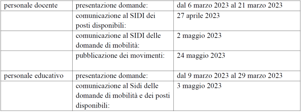 In data 2 marzo il MIM ha pubblicato la circolare con la quale trasmette le due ordinanze sulla mobilità 2023/2024 (una per il personale docente, educativo e ATA ed una per i docenti di religione cattolica) e il CCNI concernente la mobilità del personale docente, educativo ed ATA per gli anni scolastici relativi al triennio 2022/23, 2023/24, 2024/25 sottoscritto il giorno 18 maggio 2022.