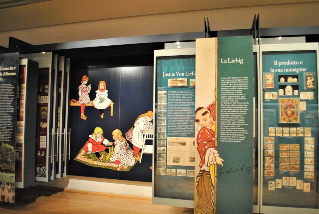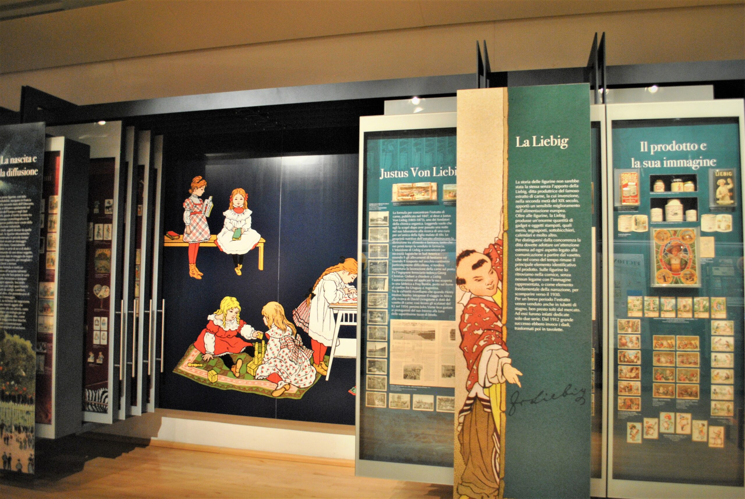La figurina moderna nasce nella seconda metà dell’Ottocento, come mezzo di promozione pubblicitaria: l’omaggio al cliente di un importante magazzino costituiva una sorta di stimolo a ritornare e a servirsi delle proposte commerciali che ciascuno di essi offriva. La casa produttrice dei famosi estratti per brodo Liebig fu certo quella che lanciò raccolte di figurine che, ancora oggi, costituiscono il sogno dei più irriducibili collezionisti (forniti di portafogli assai consistenti). Le figurine Liebig, ma anche altri gadget firmati dall’industria del grande chimico tedesco, come, con i bellissimi cartonati pubblicitari, figurano tra i pannelli più belli del museo. Nonsolofiguine, diremmo, approfittando di un trendy ed abusato modo di dire, ma anche menu, segnaposti, sottobicchieri, etichette d’albergo, calendari e calendarietti profumati, chiudilettera, segnalibri, carte da gioco, album antichi e moderni, fanno parte di questo viaggio nel mondo di un’arte popolare tutta da scoprire e da valorizzare, per arrivare a ciò che costituisce la parte centrale della produzione collezionistica della Panini, vale a dire le figurine dei calciatori che dal 1961 hanno appassionato intere generazioni di ragazzi in un appassionante gioco di ricerca, scambio e conservazione, che ha accompagnato adeguatamente la passione “pulita” per il calcio. Accanto a quella per i divi del pallone, si sono mosse, nel segno del “celo… mimanca”, le passioni per i cantanti, per i personaggi dei fumetti, del cinema e della televisione, per i ciclisti, per i più accreditati film d’animazione.