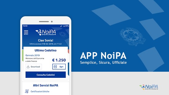 Il sistema NoiPA a portata di click: è disponibile gratuitamente su Google Play e App Store la prima applicazione ufficiale “NoiPA”.
