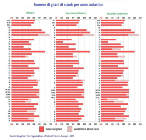 Il numero di giorni di scuola varia tra 162 giorni in Francia (tranne nell’istruzione