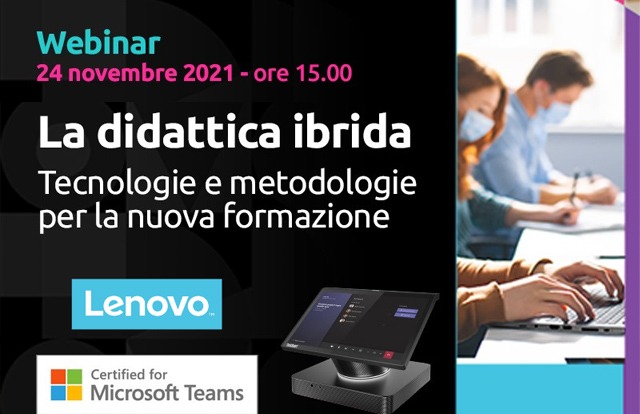Per approfondire questo interessante tema, il 24 novembre a partire dalle ore 15:00 sarà possibile seguire gratuitamente in diretta streaming il webinar “La didattica ibrida, tecnologie e metodologie per la nuova formazione”.