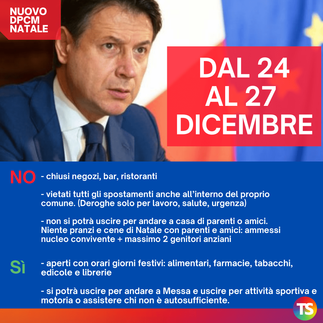 Secondo fonti di governo, il nuovo Dpcm Natale è pronto e il presidente del Consiglio Giuseppe Conte parlerà questa sera, 18 dicembre, in diretta. Le restrizioni del nuovo Dpcm Natale riguarderanno i giorni che vanno dal 21 dicembre al 6 gennaio 2021.
