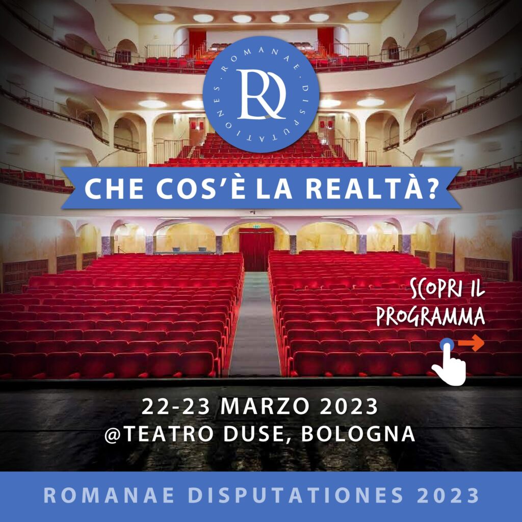 I prossimi 22 e 23 marzo, presso il Teatro Duse di Bologna e in diretta streaming, circa 1000 studenti e docenti delle scuole superiori italiane si riuniranno per interrogarsi sul tema fondamentale della filosofia. “Che cos’è la realtà?”, nell’ambito della X edizione del Concorso nazionale di filosofia per scuole superiori, Romanae Disputationes.