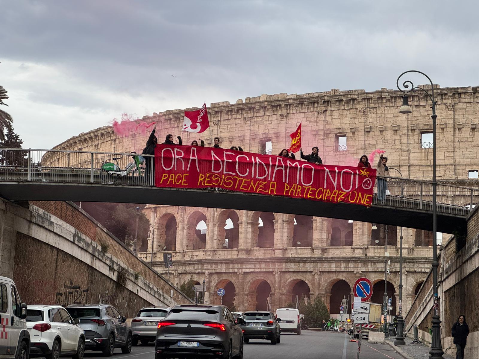 Uno striscione calato nelle prime ore del mattino ha dato il via a una nuova stagione di mobilitazione studentesca. L’Unione degli Universitari e la Rete degli Studenti Medi hanno lanciato un messaggio: “Ora decidiamo noi: Pace, Resistenza, Partecipazione”.
