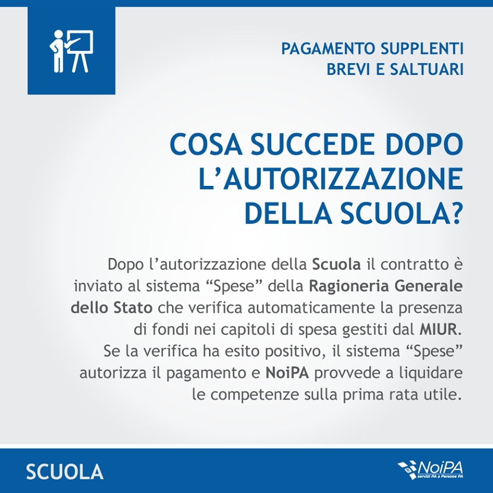 Sulla pagina Facebook di NoiPA è stato pubblicato un messaggio riguardante il pagamento delle supplenze brevi e saltuarie.