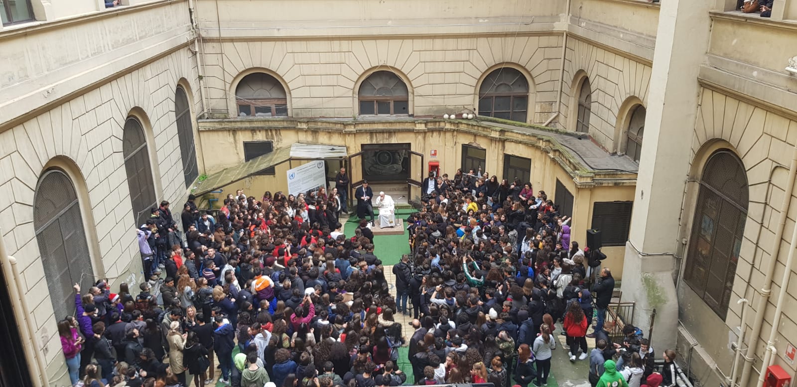 La presenza di Papa Francesco ha emozionato i giovani del Liceo che hanno mostrato grande e partecipata attenzione alle riflessioni che il Santo Padre ha rivolto loro in questa straordinaria circostanza.