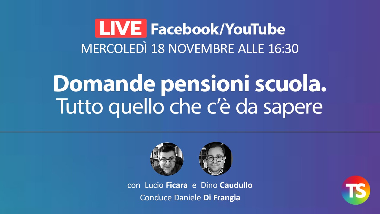 Nella puntata di oggi 18 novembre, alle ore 16:30, parleremo di pensioni del personale scolastico, con tutte le informazioni utili in vista della scadenza del 7 dicembre prevista per la presentazione della domanda.