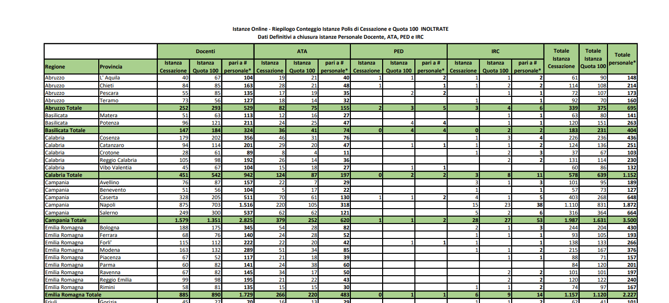 I dati sono stati diffusi ed evidenziano anche come sul totale delle domande 16.683 siano state prodotte avvalendosi dei requisiti della cosiddetta “quota 100”.
