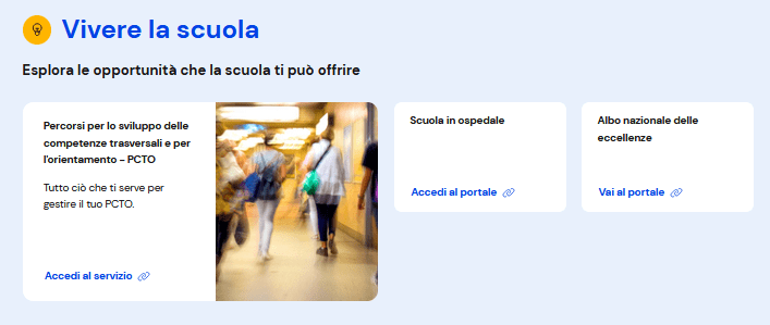 In Vivere la scuola lo studente può esplorare le opportunità che la scuola offre, quindi le attività di PCTO, la Scuola in ospedale e l’Albo nazionale delle eccellenze.