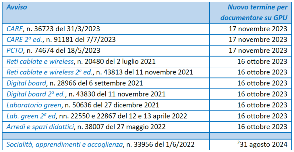 Non cambiano i termini per gli avvisi prot. 78988, 91289 e 100100 del 2023 (laboratori green 3a e 4a edizione, cablaggio/digitali board/laboratori green).