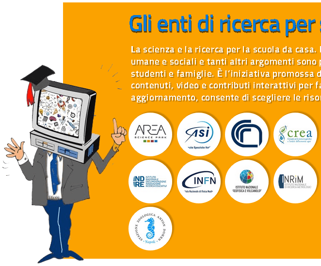 Fisica e astrofisica, spazio, ambiente, natura, tecnologia, matematica, scienze umane e sociali, innovazione e risparmio energetico e tutto quanto può essere compreso nella definizione di ricerca scientifica viene messo a disposizione di insegnanti, studenti e famiglie, che in questo periodo si sono organizzati con la didattica a distanza.