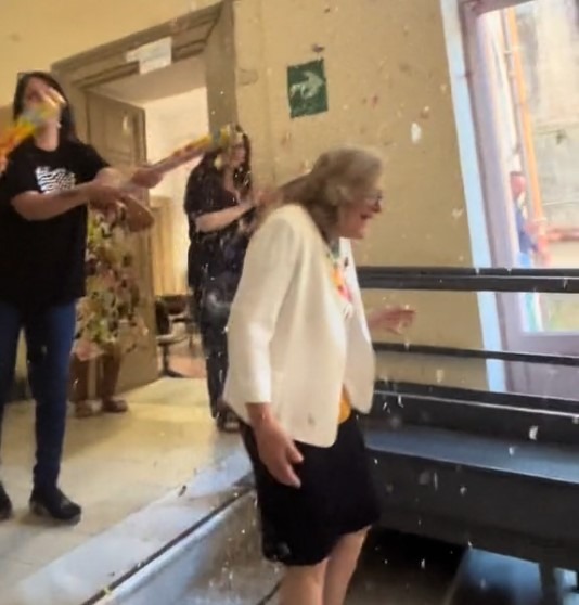 Da un video postato sui social dall’account dell’istituto si legge: “Grazie Preside, unica ❤️ Gli studenti del Colombo”. Stelle filanti, applausi, abbracci, la dirigente ha sfilato per tutto il corridoio e il giardino della scuola immersa nei sorrisi di tante persone che hanno voluto ringraziarla per tutto quello che ha fatto in questi anni.