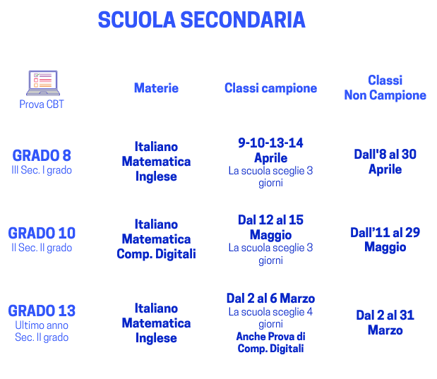 Seguiranno ad aprile le classi di terza media, con prove previste tra l’8 e il 30 aprile per le classi non campione.