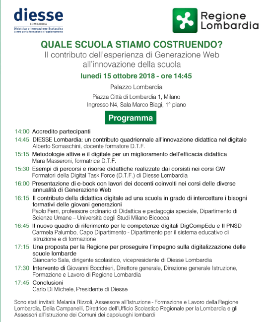 Oltre ai formatori esperti di Diesse Lombardia interverranno:
