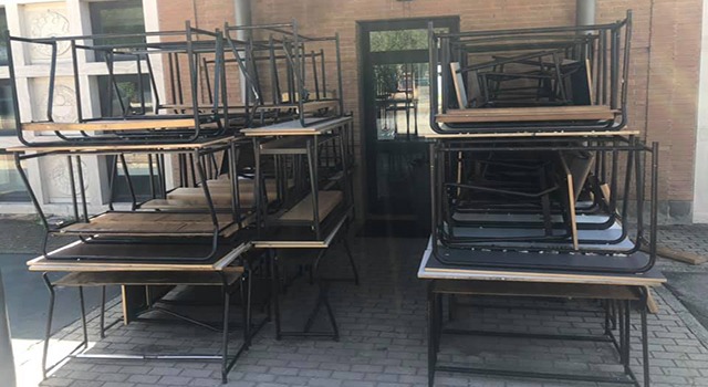 I vecchi banchi scolastici biposto sono stati sostituiti da quelli monoposto arrivati in tutte le scuole a seguito dell’emergenza Covid-19.