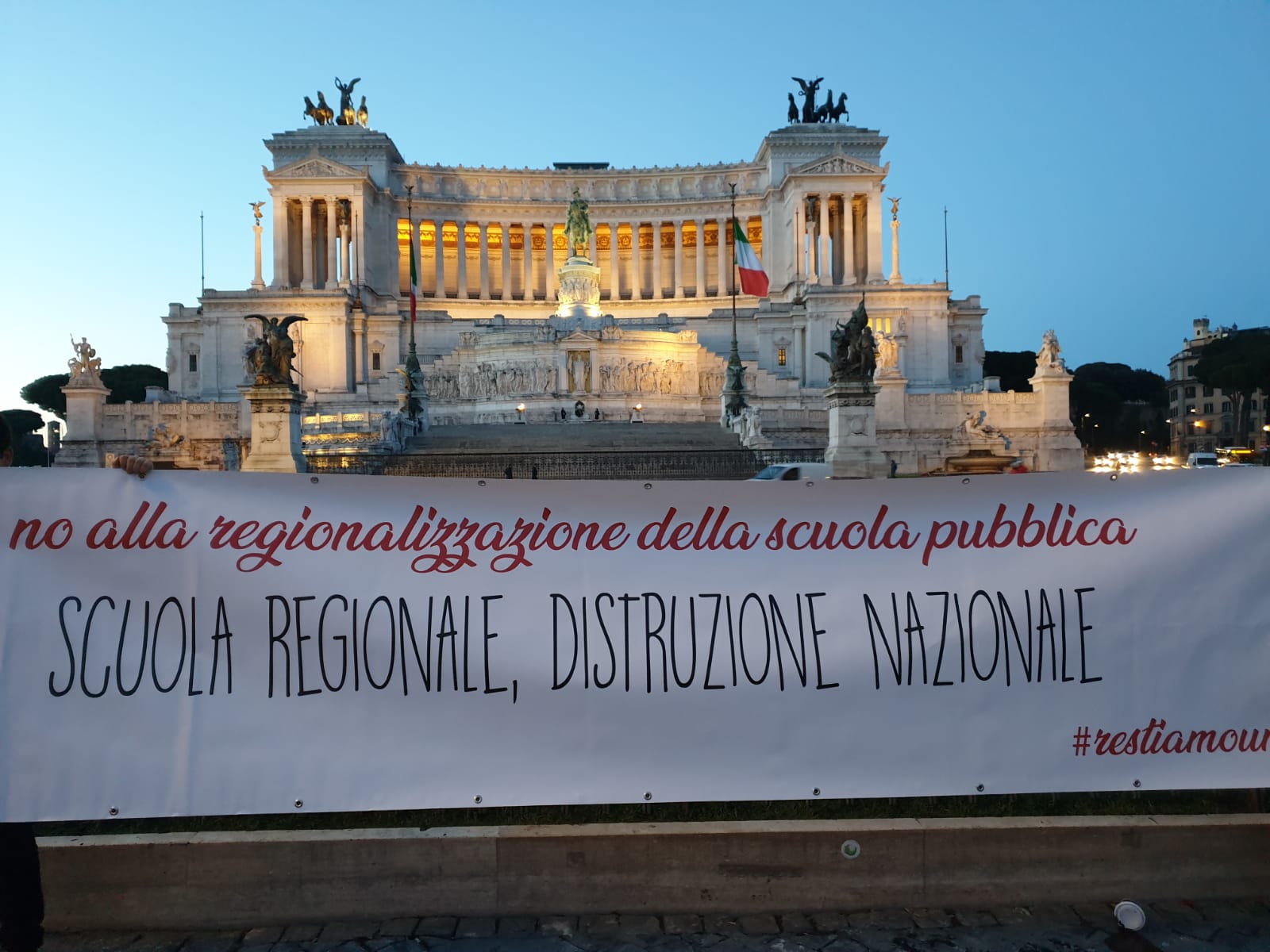 Stamattina alle prime luci dell’alba, sindacati (Flc Cgil, Cisl Scuola, Uil Scuola, Snals e Gilda) e studenti di Roma, in vista dello sciopero generale della scuola del 17 maggio 2019, hanno organizzato una serie di blitz al Miur e in altri luoghi simbolo di Roma, per avviare la fase mobilitazione in difesa della scuola pubblica nazionale, contro il progetto di regionalizzazione della scuola avviato da alcune regioni e dal Governo.