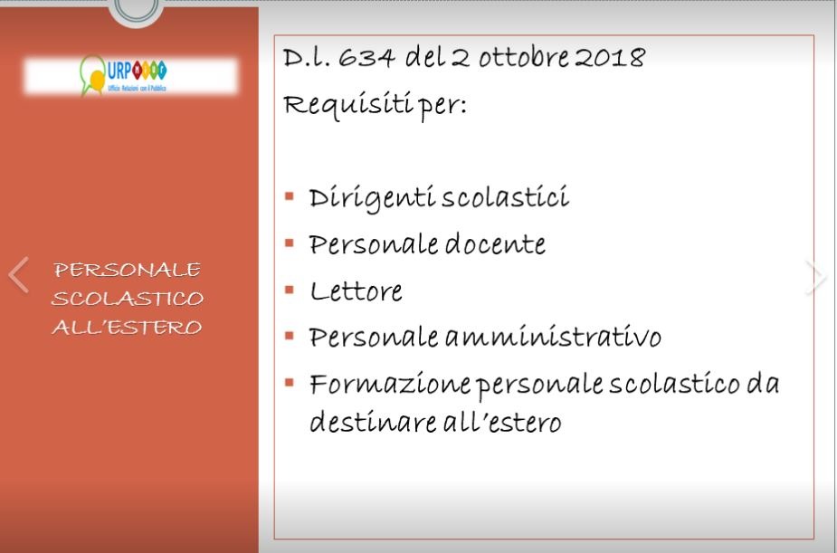 Con D.I. n. 634 del 2 ottobre scorso il MIUR e il MAECI hanno fornito indicazioni in merito ai requisiti culturali e professionali fondamentali dei dirigenti scolastici, dei docenti e del personale amministrativo della scuola da inviare all’estero, ai sensi dell’articolo 14 del decreto legislativo 13 aprile 2017, n. 64.