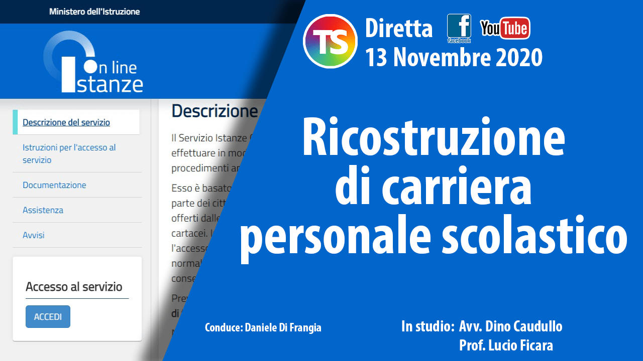 Nella puntata di oggi 13 novembre, alle ore 16:00, si è parlato di Ricostruzione della carriera, con tutte le informazioni utili in vista della scadenza del 31 dicembre prevista per la presentazione della domanda.