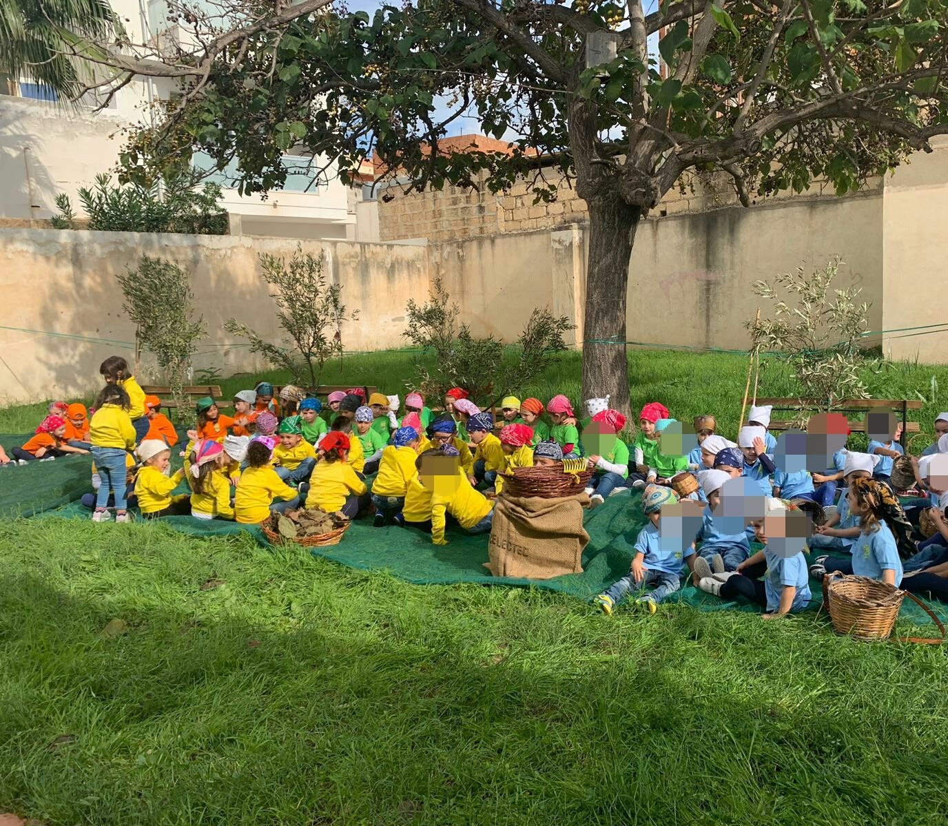 A indossare, per l’occasione, i panni di piccoli contadini, gli alunni della scuola dell’infanzia “Luigi Frasca” di Vittoria (RG), plesso dell’Istituto Comprensivo “Filippo Traina”. Muniti di cestini, canne e reti, i bambini sono stati guidati dalle loro insegnanti nel giardino circostante allestito a uliveto, per scoprire le tecniche di raccolta del frutto simbolo della dieta mediterranea.