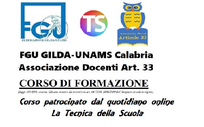 Il prossimo 29 novembre, dalle ore 8,30 alle ore 17,30, presso la Sala convegni dell’Hotel La Principessa di Campora San Giovanni-Amantea (CS), si terrà il corso di formazione, patrocinato da La Tecnica della Scuola, organizzato dalla FGU GILDA-UNAMS Calabria e Associazione Docenti Art. 33.