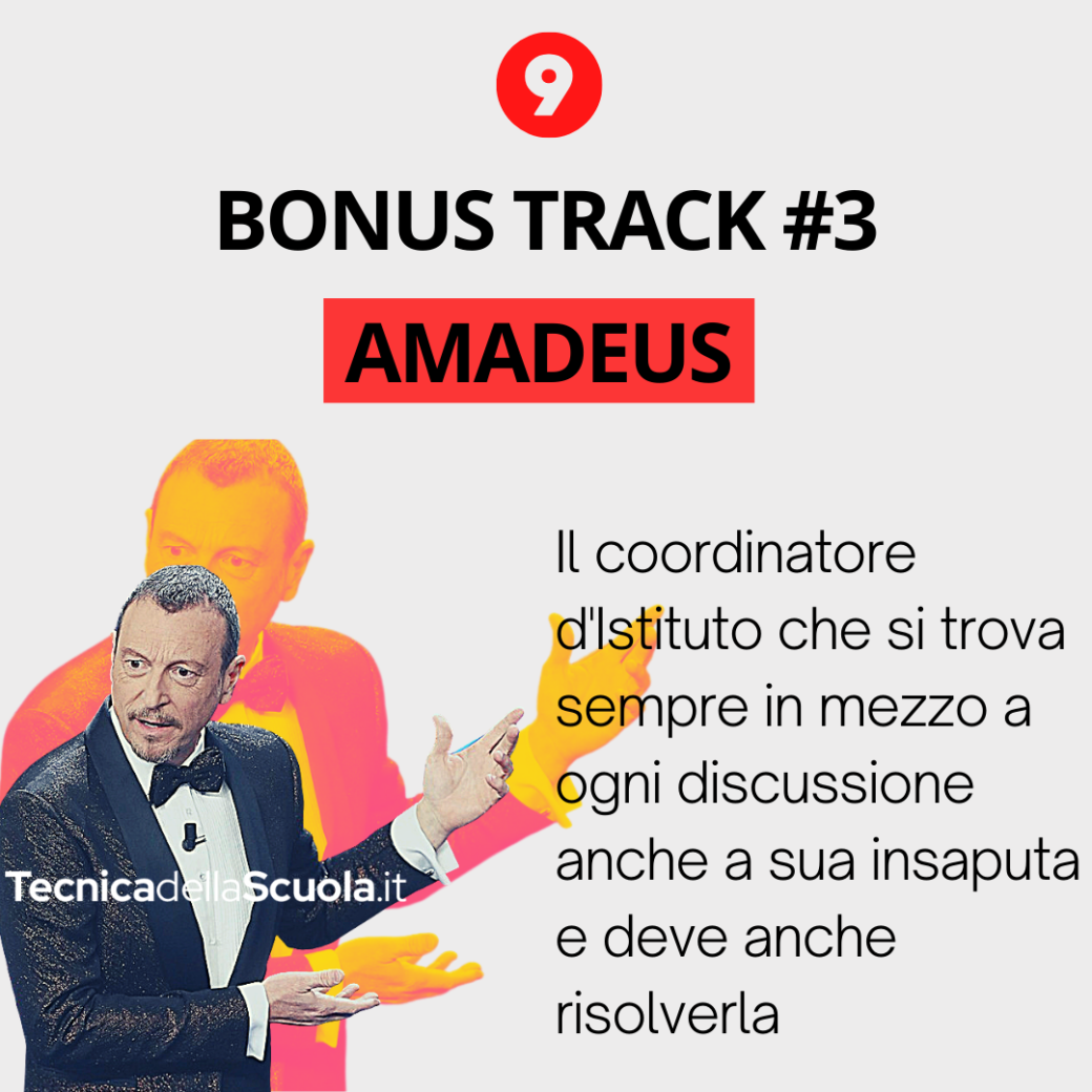Bonus 3, Amadeus: il coordinatore d’Istituto che si trova sempre in mezzo a ogni discussione anche a sua insaputa e deve anche risolverla.