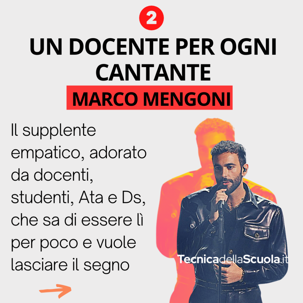 Marco Mengoni: il supplente empatico, adorato da docenti, studenti, Ata e ds, che sa di essere lì per poco e vuole lasciare il segno.