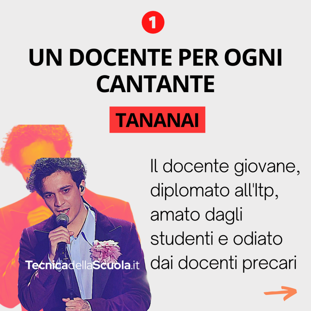 Tananai: il docente giovane, diplomato all’Itp, amato dagli studenti e odiato dai docenti precari.