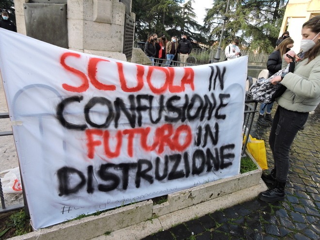 In 60 città mobilitazioni contro la Didattica a Distanza da parte di studenti e docenti, per chiedere la riapertura in presenza, in sicurezza e in continuità di tutti gli istituti scolastici, dal nido all’università non oltre il 7 aprile.