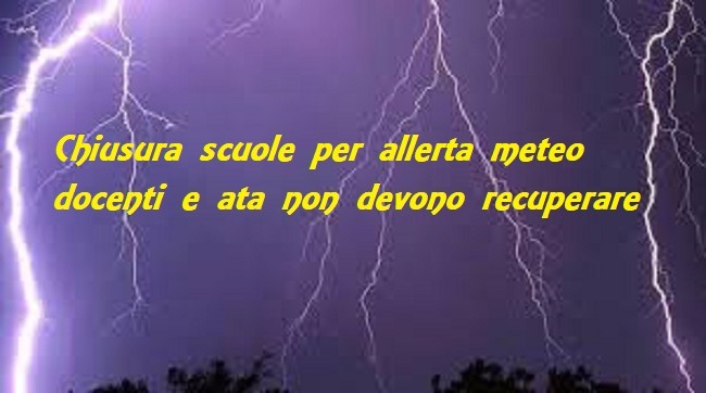 In caso di sospensione delle attività didattiche per allerta meteo, i docenti restano a casa, mentre invece, non rimanendo chiusa la scuola, il personale Ata si deve recare regolarmente a scuola. In questa situazione i docenti non dovranno collegarsi in DaD e nemmeno dovranno recuperare la giornata in cui le lezioni sono state sospese.