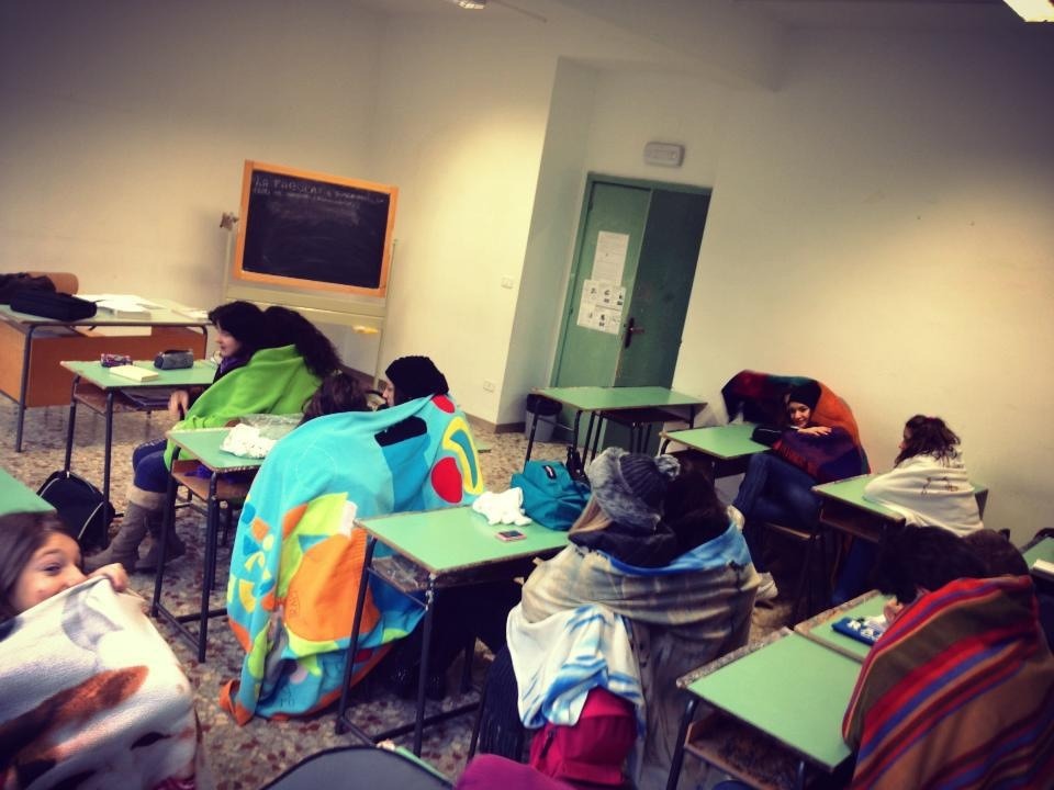 Come difendersi? Giubbotti abbottonati durante la lezione per 1 su 2, coperta per il 18% degli alunni, mentre in piccole percentuali ci sono stufette, impraticabilità di lezioni dal vivo, orario ridotto o spostamento di aula.