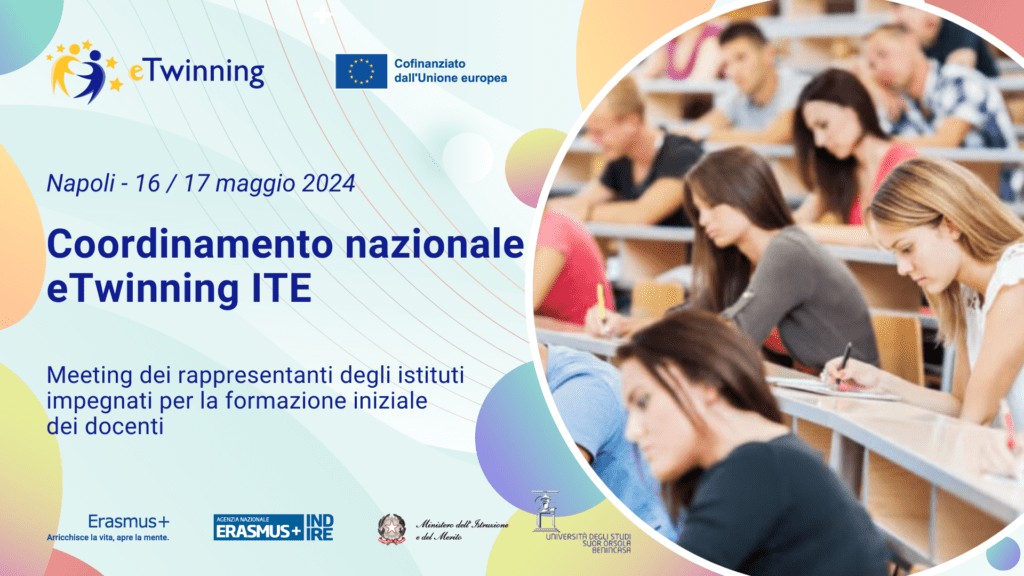 Napoli ospiterà dal 16 al 17 maggio il Coordinamento Nazionale eTwinning ITE, un importante meeting nazionale dedicato ai rappresentanti delle Università che partecipano all’iniziativa “eTwinning for Future Teachers – Initial Teachers Education (ITE)”. L’evento vedrà la partecipazione di oltre 250 Atenei impegnati nell’introduzione della didattica eTwinning nella formazione iniziale dei docenti. Questo incontro rappresenta un’opportunità cruciale per scambiare buone pratiche, stabilire nuove relazioni e valutare strategie nazionali mirate ad ampliare la partecipazione al programma eTwinning.