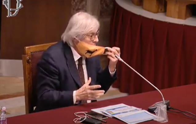 Vittorio Sgarbi, rivolto al commissario Domenico Arcuri in audizione ha detto “non prendiamo per il c…i bambini con le mascherine“.