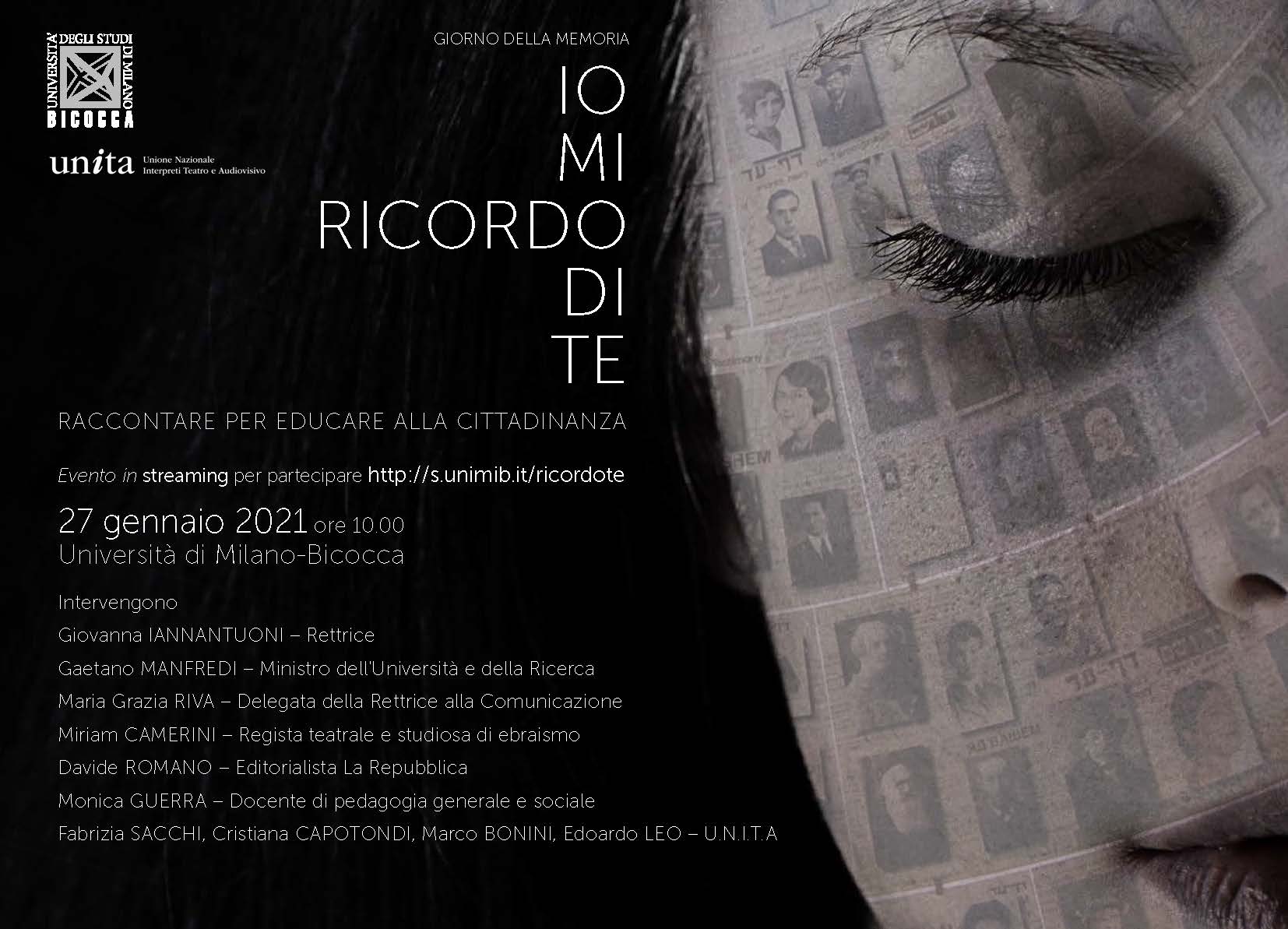 Mercoledì 27 gennaio 2021, in occasione della Giornata della memoria, una pagina del sito dell’Università di Milano-Bicocca sarà dedicata ai testimoni dell’orrore della Shoah attraverso video, fumetti, disegni e canzoni cui daranno voce e volto artisti, studenti, docenti e cittadini.