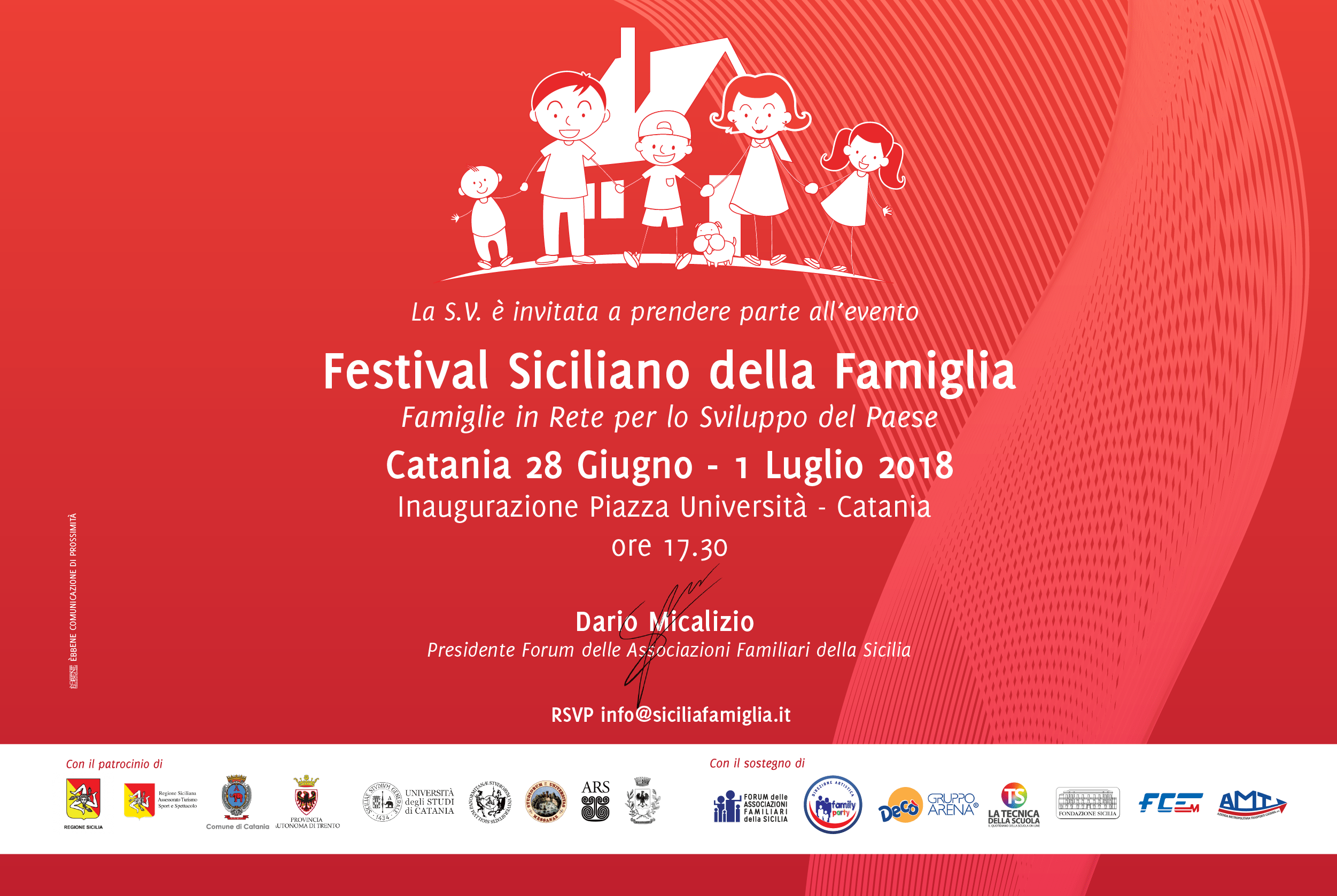 Si conclude nella giornata del 1°luglio la prima edizione del Festival Siciliano della Famiglia, l’evento promosso dal Forum delle Associazioni Familiari a livello nazionale, regionale e provinciale con il patrocinio della Regione siciliana, assessorati regionali alla Famiglia e al Turismo, della provincia autonoma di Trento, delle Università degli Studi di Catania, di Palermo e di Messina e del Comune di Catania.