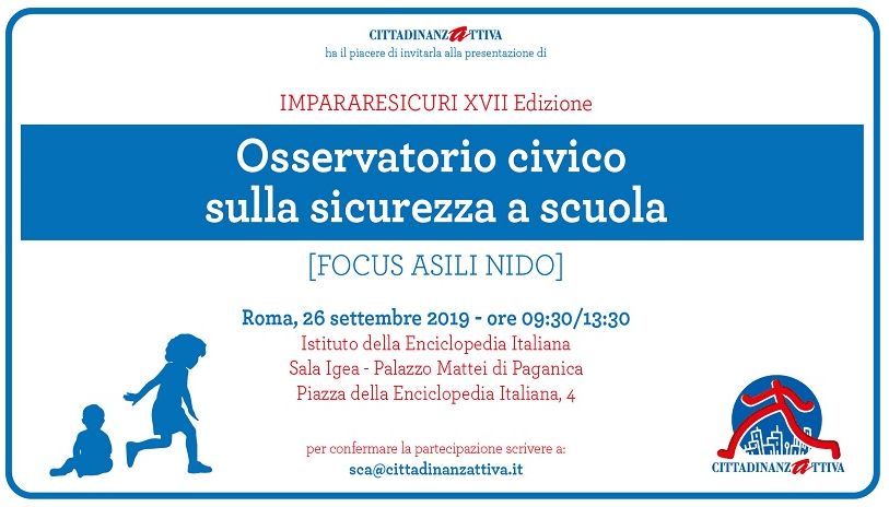Il focus specifico di questa edizione è dedicato agli asili nido, per conoscere quali siano le condizioni dal punto di vista strutturale e di sicurezza interna degli asili nido italiani (11.027) frequentati da oltre 320.000 piccolissimi utenti, dal momento che l’Anagrafe dell’edilizia scolastica non li contempla, ad eccezione di pochissimi Comuni, che già li hanno forniti volontariamente.