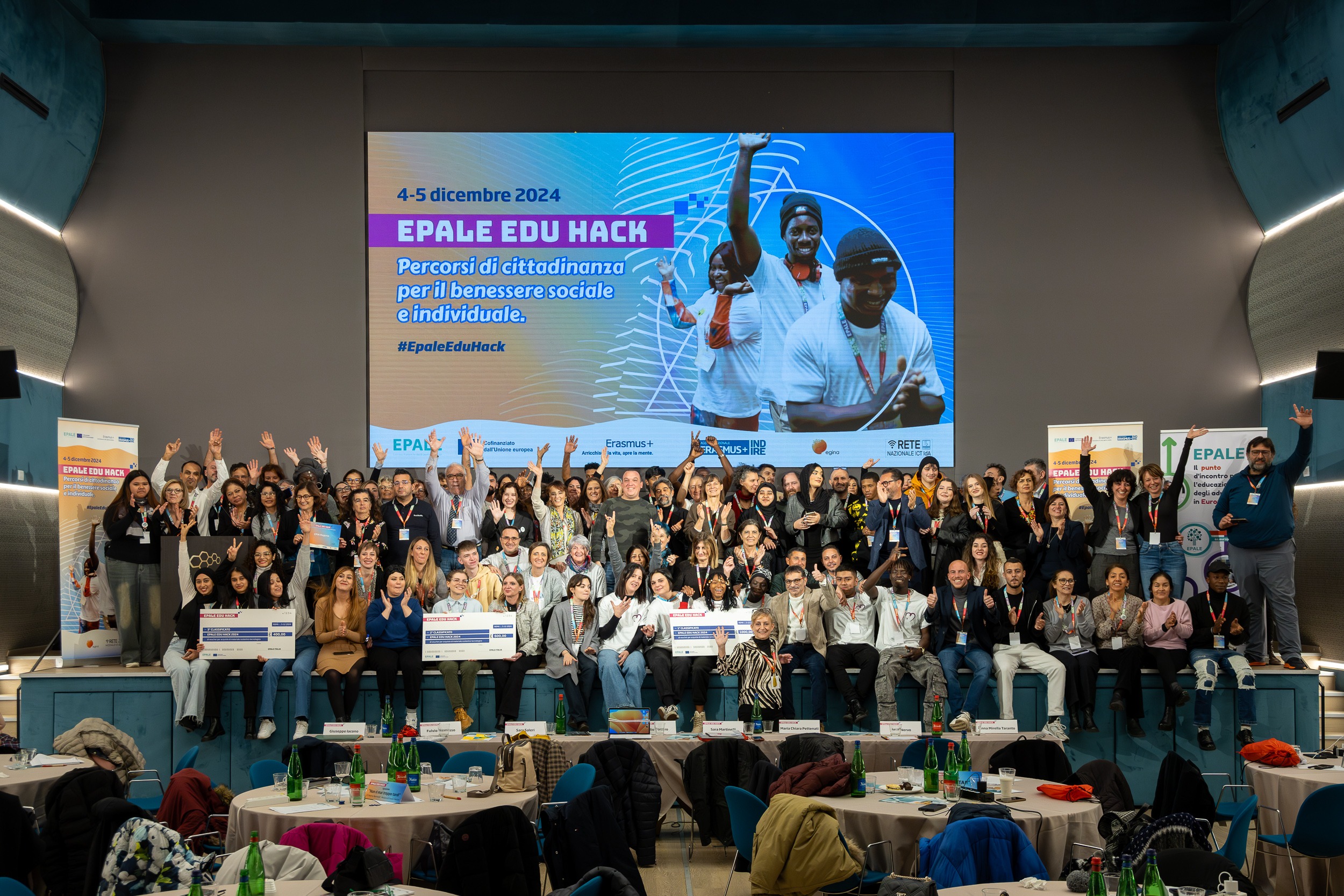 Si è conclusa oggi a Roma la quarta edizione del Social Hackathon di EPALE, ospitata al The Hive Hotel. La manifestazione ha visto la partecipazione di oltre 80 studenti e insegnanti provenienti dai Centri Provinciali di Istruzione degli Adulti (CPIA) e da scuole che offrono percorsi formativi per adulti. Per due giorni, i partecipanti si sono sfidati nella creazione di soluzioni digitali innovative sul tema del benessere individuale e della coesione sociale, fulcro dell’edizione 2024.
