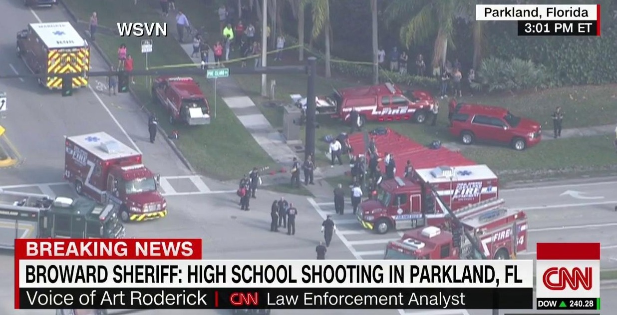 DEVELOPING: Police are responding to reports of a shooting at Stoneman Douglas High School in Parkland, Florida. Aerials show SWAT and medical personnel on the ground, students being evacuated from the school. https://t.co/oTncgG8W7h pic.twitter.com/pLY5dOFgVA