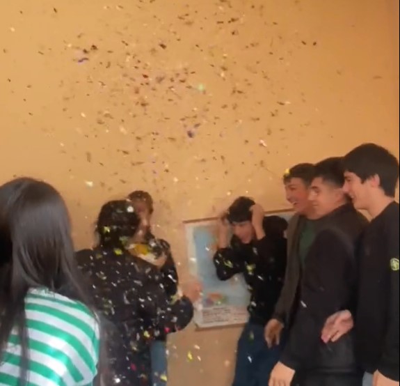 Alcuni studenti simulano una rissa in classe mentre i compagni chiamano preoccupati la docente. Mentre l’insegnante si avvicina per capire cosa è successo e dividere gli alunni litigiosi, ecco che arriva la sorpresa: coriandoli, applausi, abbracci e fiori, un modo per ringraziare i docenti per tutto il lavoro che fanno e per sottolineare la bellezza del rapporto umano che si costruisce.