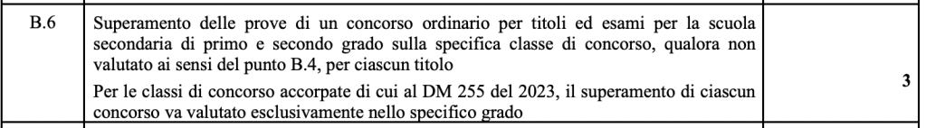 Vale la pena ricordare che i concorsi ordinari PNRR non sono abilitanti per cui, il superamento delle prove del concorso PNRR1, PNRR2 e anche quelli PNRR3, potranno essere dichiarati ai sensi del punto B.6 solo se il concorso si è concluso con pubblicazione della graduatoria.