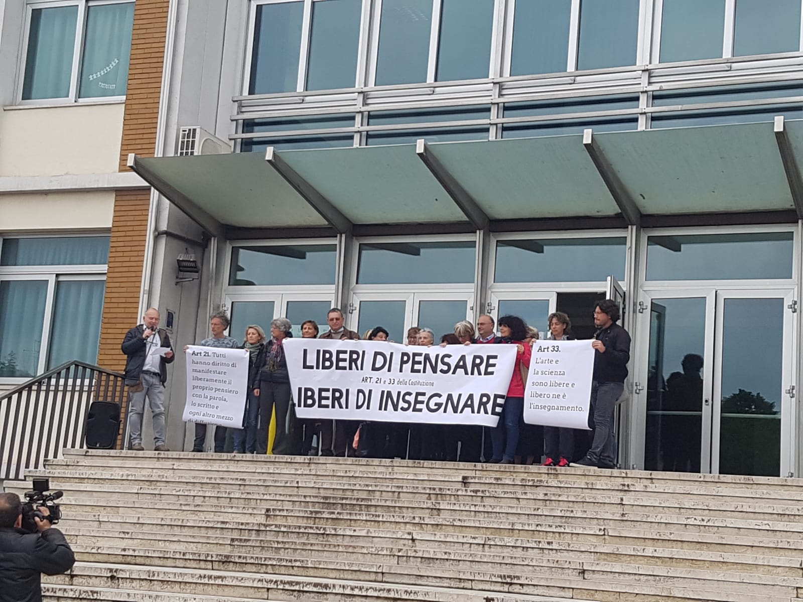 Martedì 21 maggio, alle ore 11, ogni insegnante, studente, cittadino che voglia riaffermare la libertà di pensiero e di insegnamento, dovunque si trovi, interromperà le proprie attività, si metterà in piedi e leggerà di seguito gli articoli 21 e 33 della Costituzione italiana. Laddove possibile la lettura solenne sarà fatta in gruppo.