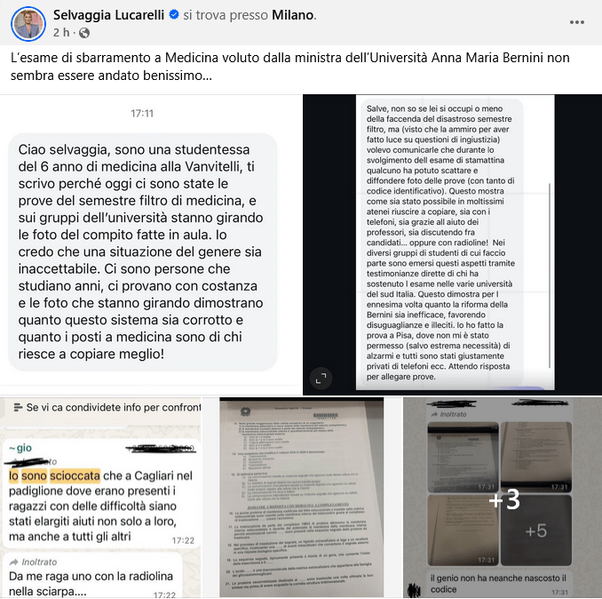 È di poco fa un post pubblicato dalla giornalista Selvaggia Lucarelli, in cui riporta i messaggi ricevuti da alcuni candidati che segnalerebbero gravi irregolarità in alcune delle sedi.
